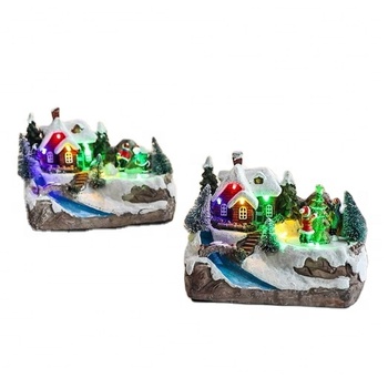 Escena de Navidad tren caja de música giratoria enchufable Navidad pueblo artesanía ornamento Mesa resina LED estatua